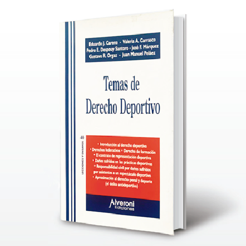 Se tratan diversos temas vinculados al derecho deportivo: la organización de las entidades deportivas, derechos y deberes de los jugadores, responsabilidad penal por hechos causados con ocasión de espectáculos deportivos y responsabilidad civil por daños causados en el juego y a los concurrentes a los eventos deportivos.